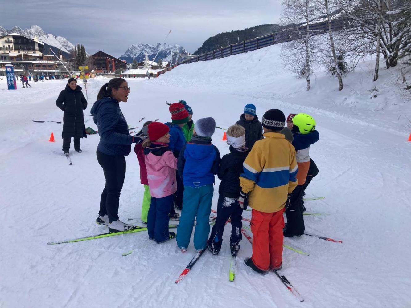 Die Langläufer fuhren hingegen mit dem Zug nach Seefeld, wo sie von ihren Langlauflehrerinnen in Empfang genommen und in Gruppen eingeteilt wurden. Es wurden Spiele gespielt, viel Technik geübt und sogar Hügel auf- und abgefahren. Wir hatten an den meisten Tagen gutes Wetter und zum Glück auch genügend Schnee!